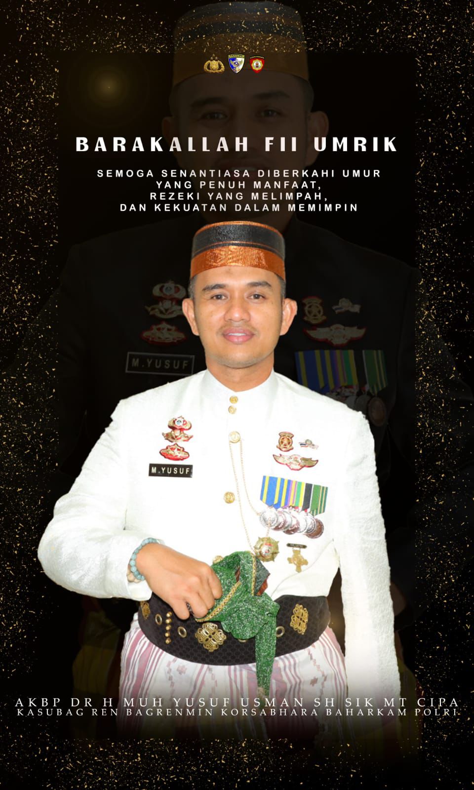 Ucapan tersebut disampaikan sebagai bentuk penghormatan dan apresiasi atas dedikasi serta pengabdian AKBP Dr. Muh Yusuf Usman dalam menjalankan tugas dan tanggung jawabnya di lingkungan Kepolisian Negara Republik Indonesia.